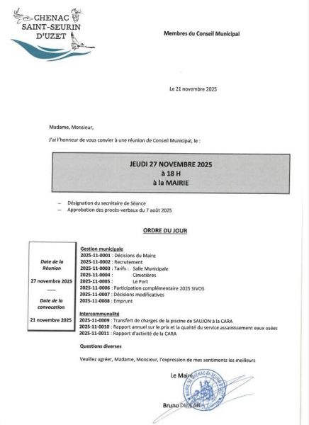 Le Jeudi 27 novembre 2025 à 18h00 à la MAIRIE